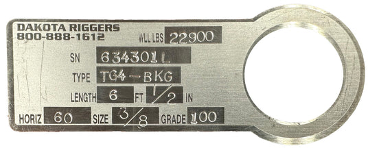 Our durable metal tags will withstand the day-to-day rigors of your jobsite and will be permanently stamped with your sling information!