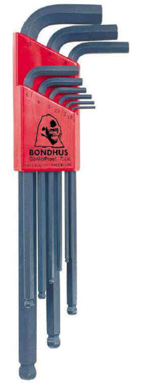 Bondhus Metric Ball End Allen Wrench Set is ideal for precise fastening. Made from industrial strength Protanium steel and featuring a ProGuard finish for durability and rust resistance, this 9pc set delivers superior performance for a range of torquing applications. It's perfect for both at-home and professional jobs.