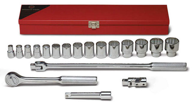 Wright SAE 12 Point Socket Set, 1/2" Drive, 19 pc.